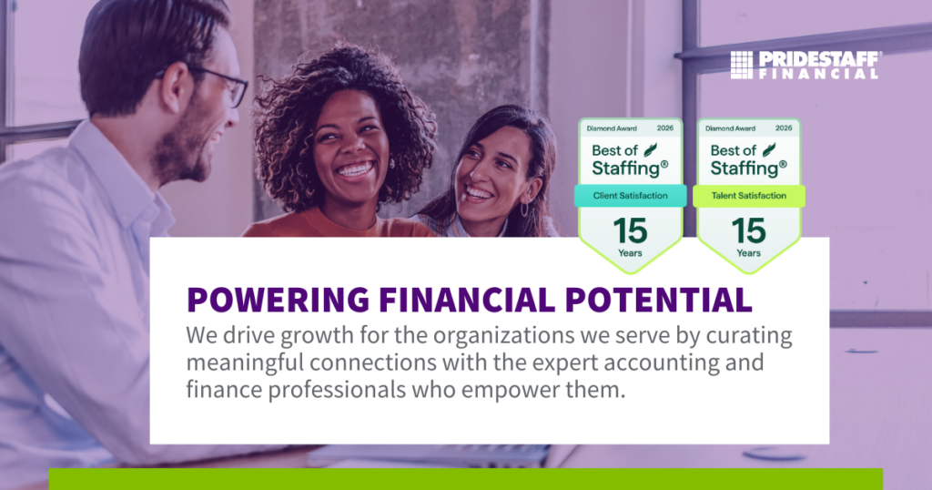 PrideStaff Financial, a nationally franchised accounting and financial staffing division of PrideStaff, is pleased to announce it has been awarded the 2026 Best of Staffing® Client and Talent 15-Year Diamond Awards by ClearlyRated. Based entirely on ratings from clients and candidates, these awards represent the pinnacle of service achievement in the staffing industry and are given exclusively to firms that have earned the Best of Staffing honor for at least 15 consecutive years. In 2026, fewer than .1% of staffing companies in the U.S. and Canada achieved the 15-Year Diamond distinction for both client and talent satisfaction.